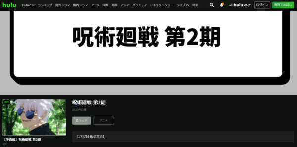 そして、アニメ「呪術廻戦 懐玉・玉折/渋谷事変(第2期)」の関連作品もHuluで配信中で見放題で視聴できます。