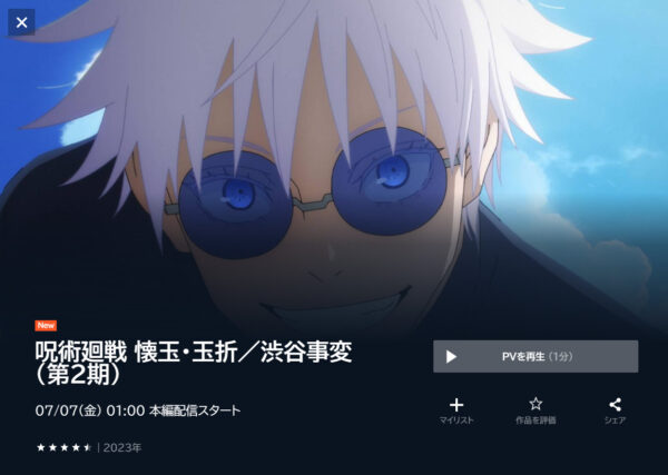 - 「呪術廻戦 懐玉・玉折/渋谷事変(第2期)」が配信後、全話見放題で視聴可能