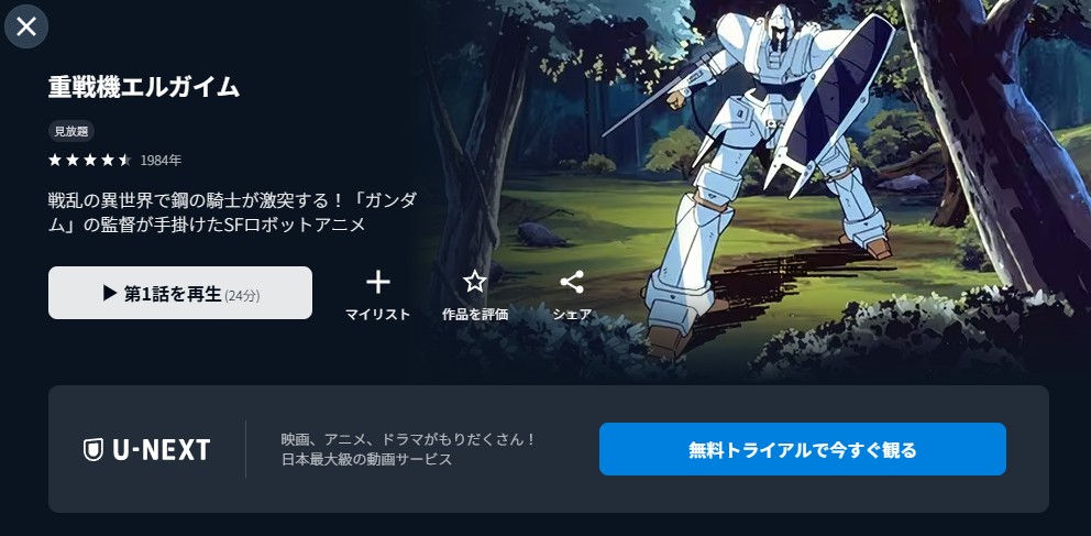 31日間の無料トライアルを利用すれば、追加料金なしで「重戦機エルガイム」を全話視聴できます。