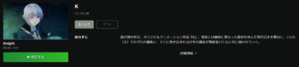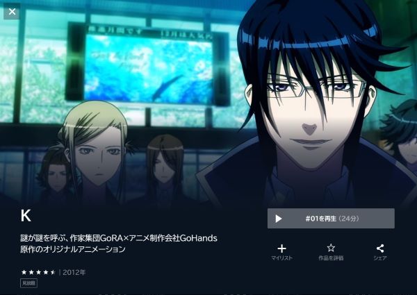 U-NEXTでアニメ「K ケイ(1期)」の動画を無料トライアルで全話視聴