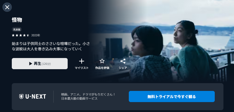 U-NEXTで配信中の映画『怪物』の動画を無料トライアルで全話視聴