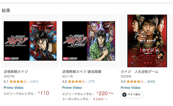 人気の動画配信サイトAmazonプライムでも、アニメ「逆境無頼カイジ」のシリーズを視聴できるか調査しました。