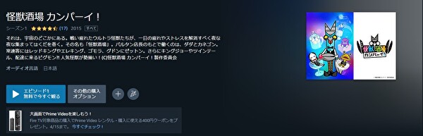 人気の動画配信サイトAmazonプライムでも、アニメ「怪獣酒場 カンパーイ!」を視聴できるか調査しました。