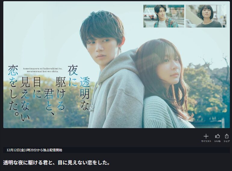 ドラマ「透明な夜に駆ける君と、目に見えない恋をした。」の配信に関するまとめ