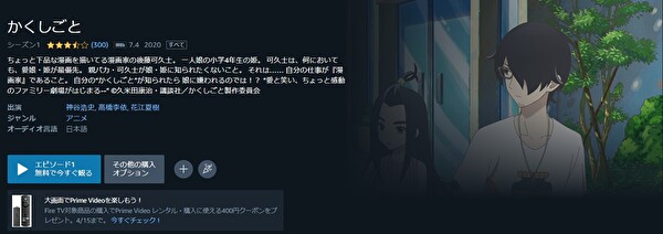人気の動画配信サイトAmazonプライムでも、アニメ「かくしごと」を視聴できるか調査しました。