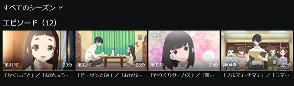 U-NEXTなら、アニメ「かくしごと」の動画を1話から全12話まで全話視聴できます。