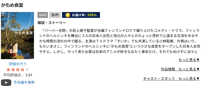 TSUTAYA DISCASで映画「かもめ食堂」をDVDレンタルで無料視聴