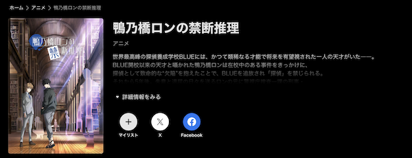 - 「鴨乃橋ロンの禁断推理」が全話見放題で視聴可能