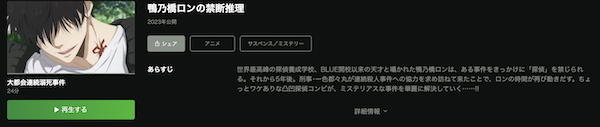 U-NEXTでアニメ「鴨乃橋ロンの禁断推理」の動画を無料トライアルで全話視聴