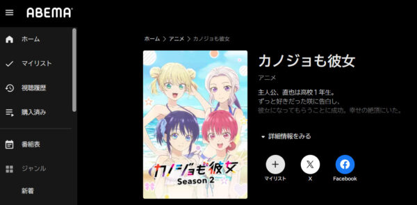お試し期間の2週間でアニメ以外も視聴できるABEMA。アニメ「カノジョも彼女 Season 2」を全話視聴した後も楽しめるので是非、おためしください。