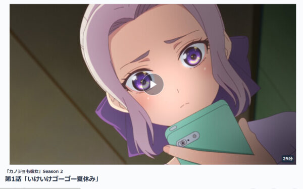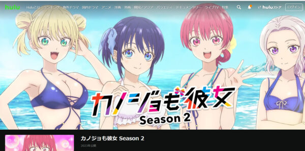 動画配信サイトHuluでは、2024年11月現在、アニメ「カノジョも彼女 Season 2」の1話(13話)~最終話(24話)が配信されており、フルで視聴可能です。
