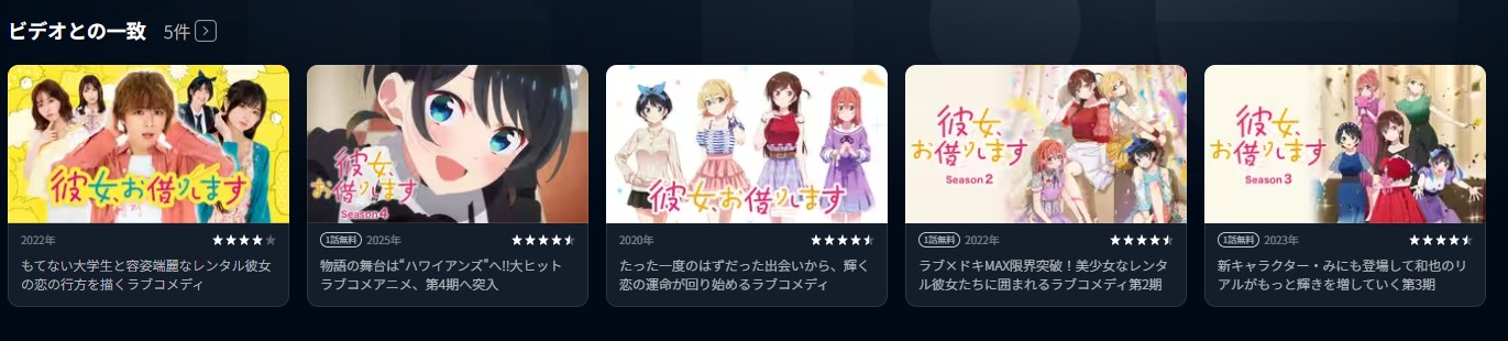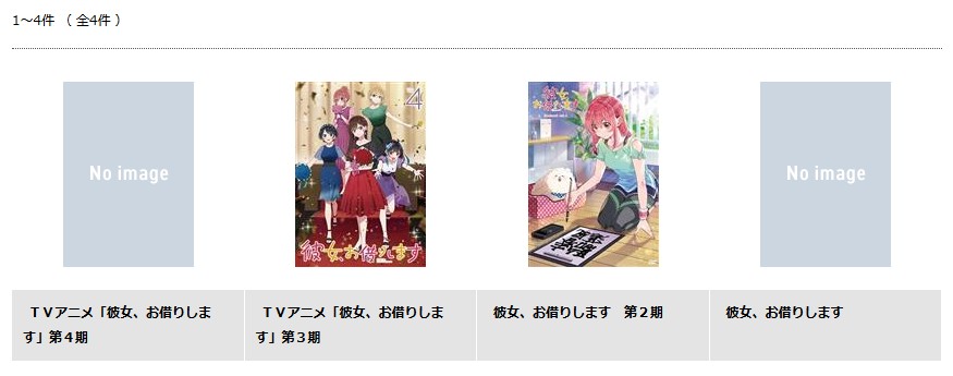 アニメ「彼女、お借りします」シリーズは「彼女、お借りします Season4」以外は旧作で取り扱われているので、追加料金なしで視聴可能です。