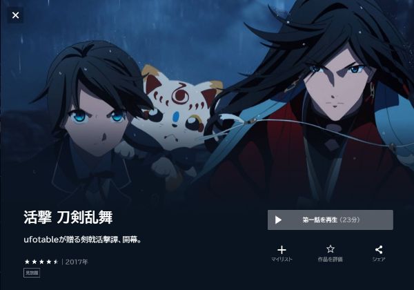 - 「活撃刀剣乱舞」が全話見放題で視聴可能