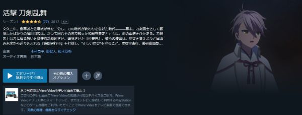 Amazonプライムはアニメ「活撃刀剣乱舞」は無料で視聴できませんが、関連動画やシリーズ作品には見放題で配信されているものもあります。