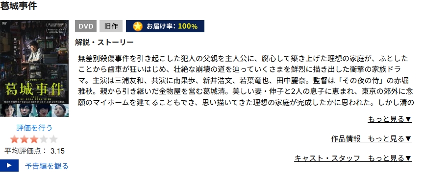 レンタルで「葛城事件」の動画を視聴する場合は、レンタル期間もあるのでその点だけ注意してくださいね。