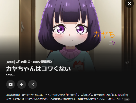 2026年1月11日(日)から放送スタートのアニメ「カヤちゃんはコワくない」の配信を全話視聴できる動画配信サービスを紹介します。