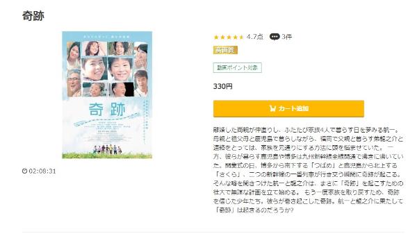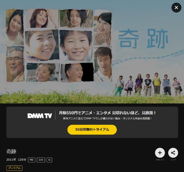 DMMTVで映画「奇跡」の動画をフルで無料視聴