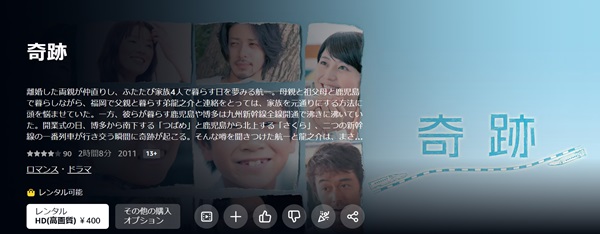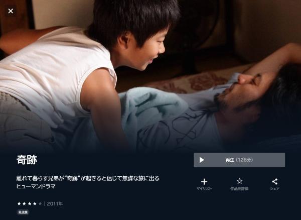 U-NEXTで映画「奇跡」の動画をフル視聴