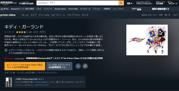 人気の動画配信サイトAmazonプライムでも、アニメ「キディ・ガーランド」を視聴できるか調査しました。