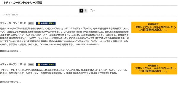 動画配信サービスとは少し違い、DVDレンタルサービスになりお試し期間で、「キディ・ガーランド」の動画を全話視聴することができます。