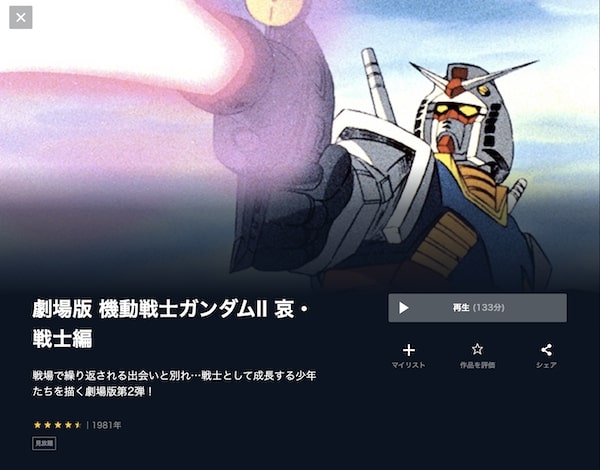 - 映画「機動戦士ガンダムII 哀・戦士編」がフルで配信中。