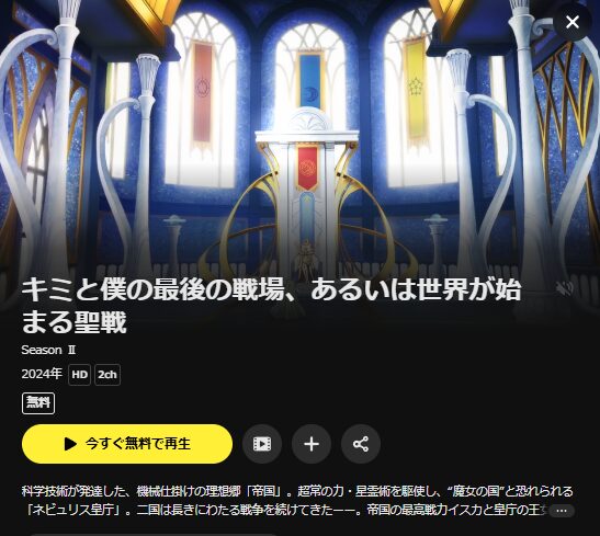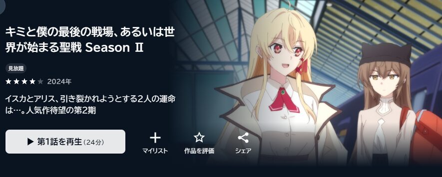 - 「キミと僕の最後の戦場、あるいは世界が始まる聖戦 Season II」が全話見放題で視聴可能