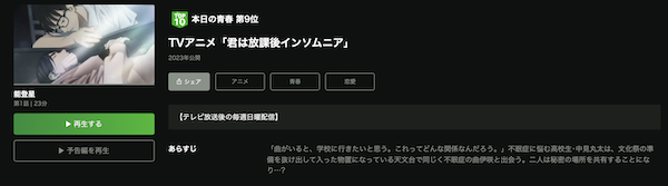 初回お試し期間が2週間があり、アニメ「君は放課後インソムニア」は配信されており全話見ることができます。
