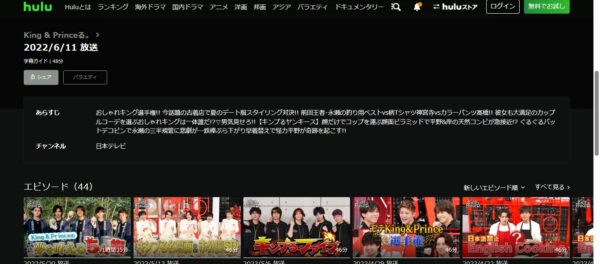 結論からお伝えすると、バラエティ番組「King & Princeる。」は、『Hulu』で動画をフルで無料視聴することが可能です。