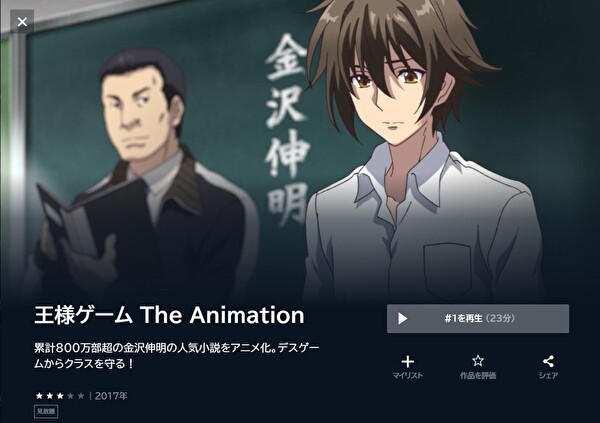 Netflixでは、アニメ「王様ゲーム The Animation」は配信されていませんでした。