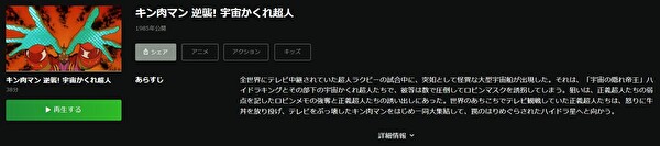 ただ、映画「キン肉マン 逆襲!宇宙かくれ超人」の関連作品の映画も配信しているので、有料にはなりますが見放題で視聴は可能です。