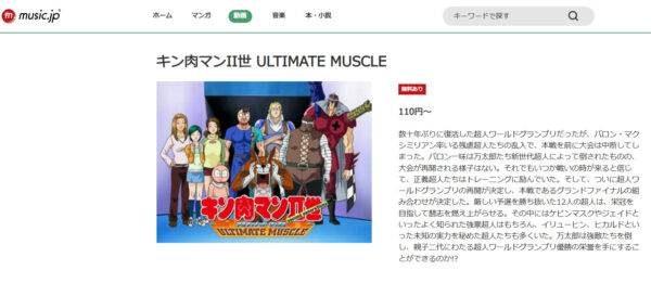 アニメ「キン肉マンII世 ULTIMATE MUSCLE」の動画は視聴できませんが、月額500円と安いコストパフォーマンスが好評です。