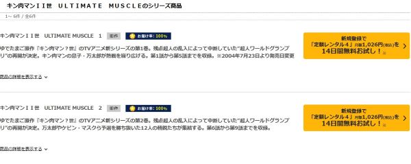 動画配信サービスとは少し違い、DVDレンタルサービスになりお試し期間で、「キン肉マンII世 ULTIMATE MUSCLE」の動画を全話視聴することができます。