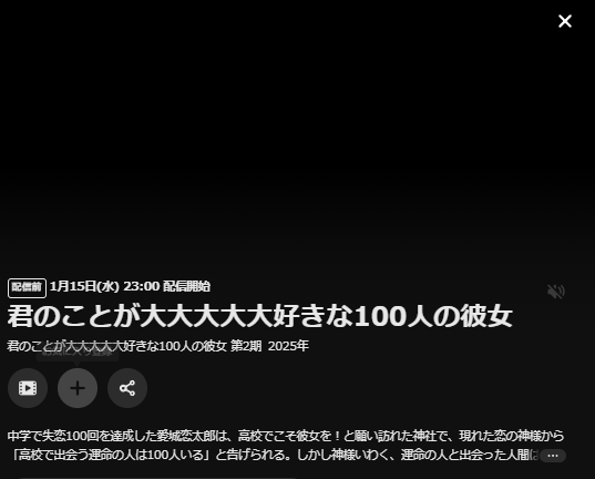 - 「君のことが大大大大大好きな100人の彼女 2期」が全話見放題で視聴可能