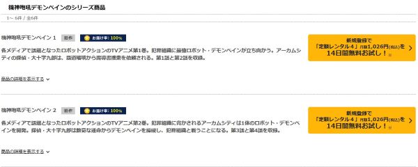 TSUTAYA DISCASは、準新作は8枚まで、話題作・旧作は枚数制限なしでお試し期間中に無料レンタルができ「機神咆吼デモンベイン」のアニメは、旧作なので無料視聴可能です。