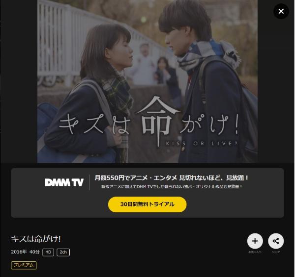DMMTVで映画「キスは命がけ!」の動画をフルで無料視聴