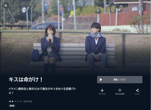 U-NEXTで映画「キスは命がけ!」の動画をフル視聴