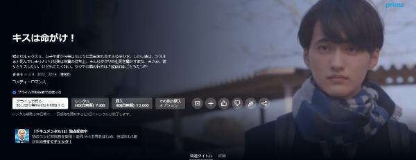 Amazonプライムビデオは、30日間のお試し無料期間があり「キスは命がけ!」の映画をフルで視聴することができます。