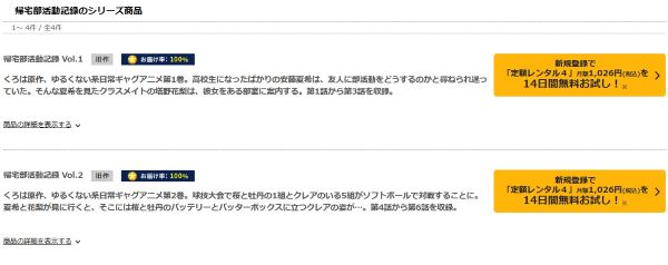動画配信サービスとは少し違い、DVDレンタルサービスになりお試し期間で、「帰宅部活動記録」の動画を全話視聴することができます。