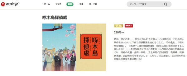 music.jpでアニメ「啄木鳥探偵處(きつつきたんていどころ)」の動画を全話無料視聴