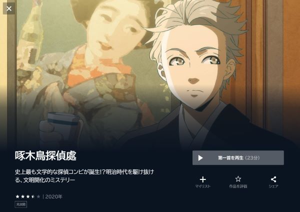 Netflixでは、アニメ「啄木鳥探偵處(きつつきたんていどころ)」は配信されていませんでした。