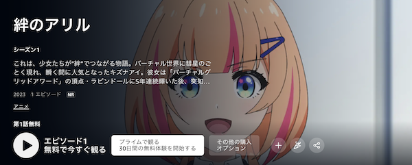 また、30日間の無料期間があるので、余裕を持って「絆のアリル」のアニメを全話視聴ができます。