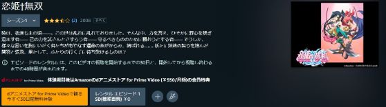 Amazonプライムはアニメ「恋姫†無双」は無料で視聴できませんが、関連動画やシリーズ作品には見放題で配信されているものもあります。