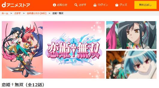 またdアニメストアは、アニメ「恋姫†無双」のシリーズや関連動画を全話視聴できます。