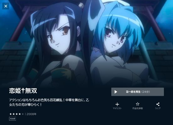 U-NEXTでアニメ「恋姫†無双」の動画を無料トライアルで全話視聴