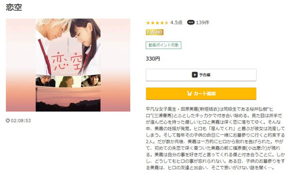 映画「恋空」は330円でレンタル配信してるので、フルで視聴できます。