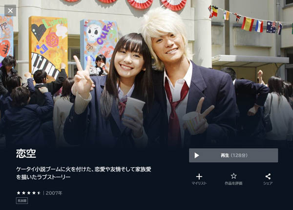 また、映画「恋空」の関連作品の映画も無料トライアル中にフル視聴が可能です。