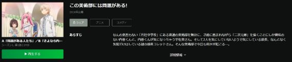 ただ、アニメ「この美術部には問題がある!」の関連作品やシリーズ作品は配信しているので、有料となってしまいますが見放題で視聴は可能です。
