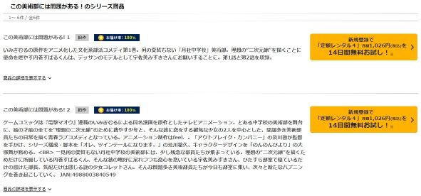 TSUTAYA DISCASは、準新作は8枚まで、話題作・旧作は枚数制限なしでお試し期間中に無料レンタルができ「この美術部には問題がある!」のアニメは、旧作なので無料視聴可能です。