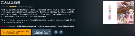 Amazonプライムはアニメ「このはな綺譚」は無料で視聴できませんが、関連動画やシリーズ作品には見放題で配信されているものもあります。