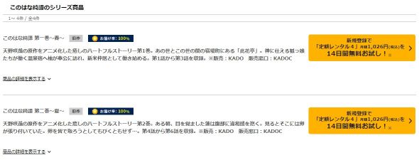 動画配信サービスとは少し違い、DVDレンタルサービスになりお試し期間で、「このはな綺譚」の動画を全話視聴することができます。